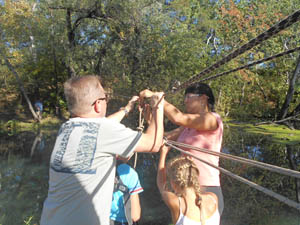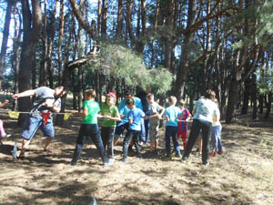 В лісі бажання і активність батьків перебороли страх як на навісній переправі, так і на інших етапах. Вони були не тільки суперниками, а й достойним прикладом своїм дітям, а інколи навіть помічниками, хоч і знаходилися в різних командах. Дівчатка допомогли матусям «накрити стіл», а після обіду гуляли, відпочивали, ділились враженнями. Шквал емоцій викликав футбольний матч між командами татусів та хлопців.