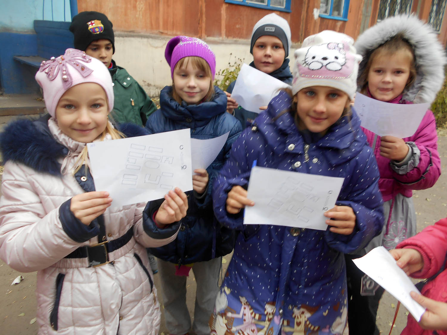 За заздалегідь підготовленій схемі розташування будинків навколо гімназії діти визначили адреси житлових будівель.