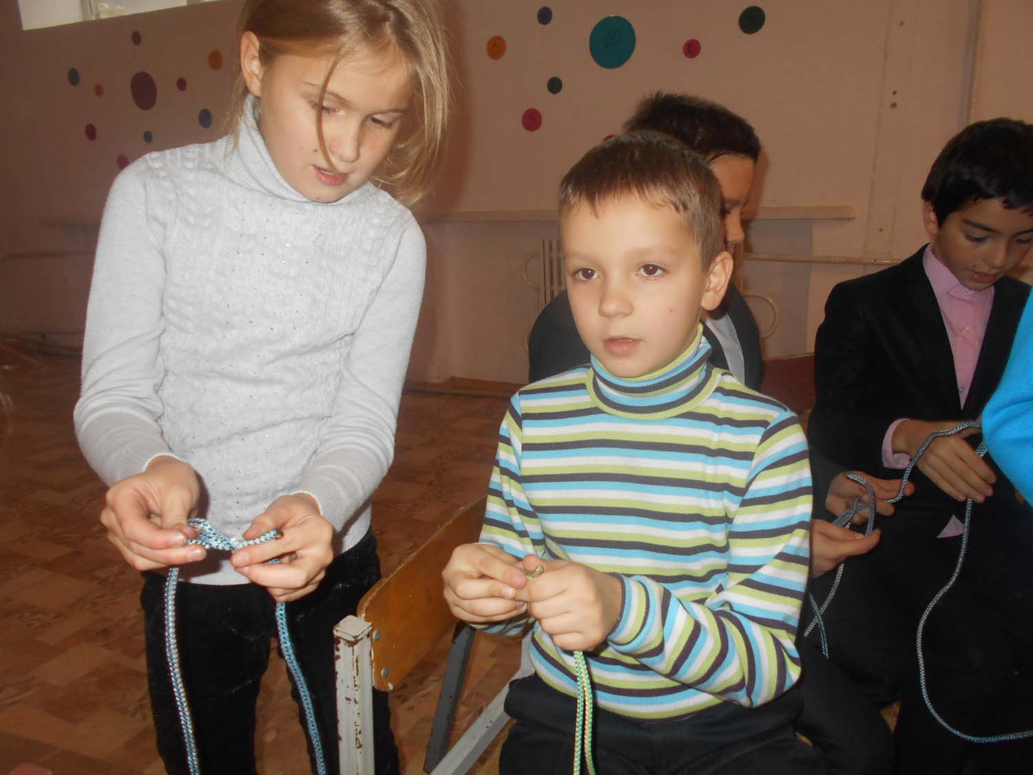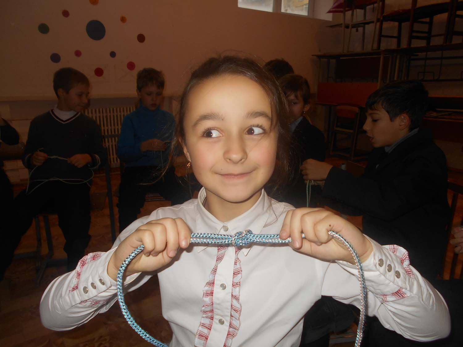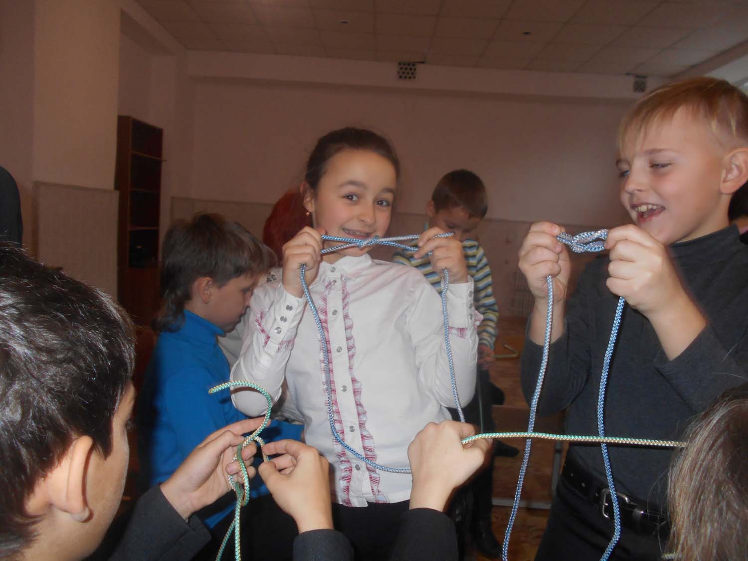 Для туриста дуже важливо уміння в'язати вузли. На цьому уроці ми вивчили прямий вузол. Наприкінці уроку майже всі уміли зав’язати вузол . Урок закінчився дружним чаюванням. Смакували чай, приготовлений на пальнику, після того як склали намети та розв’язали вузли на мотузках.