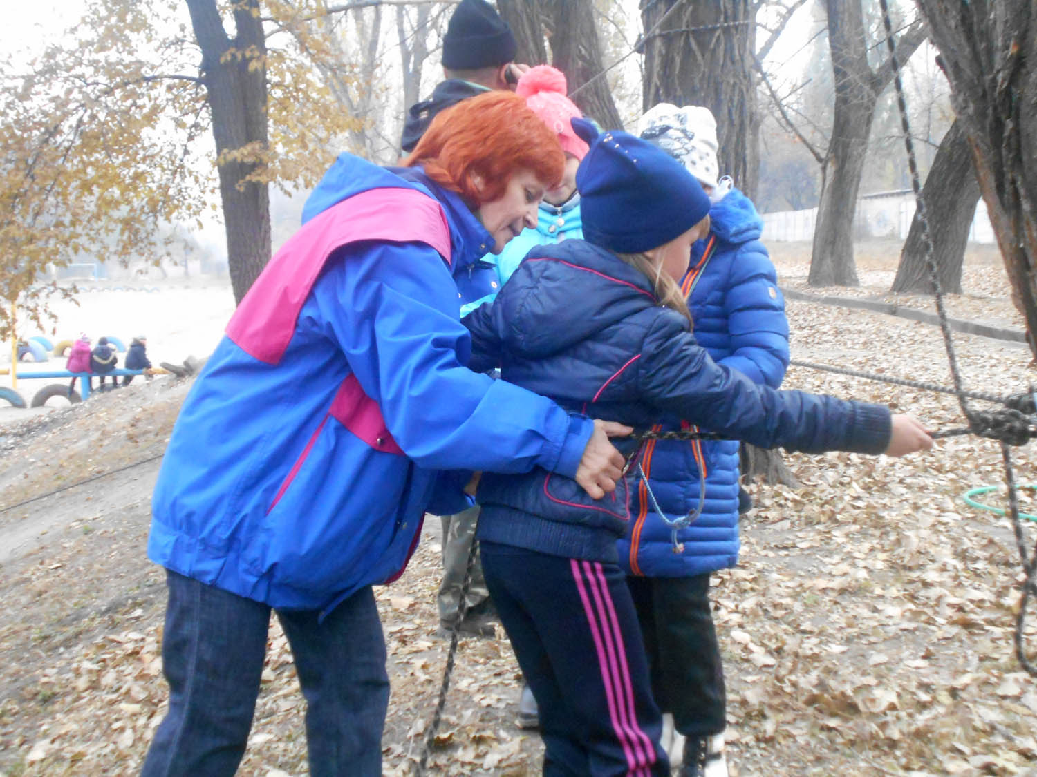 туристи з інших класів. Ми дружно і весело проходили етапи. Згадував техніку, а хто і вчилися в'язанню схоплюючого вузла (баранчика). Він згодився нам на