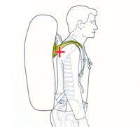 Проверьте положение плечевых лямок. Точка крепления плечевых лямок должна находиться между лопаток, и лямки должны плавно повторять изгиб Ваших плеч. Если это условие не выполняется, то следует либо выбрать Правильную длину спинки в случае моделей маленького объема, либо отрегулировать длину спинки на рюкзаках большого объема. |